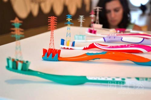 这一组微型雕塑作品是由日本艺术家Takahiro Iwasaki创作的,与其他雕塑不同的是这组微型雕塑均以日常生活中常见的线条为元素进行创作,比如人的头发、毛巾上的线、牙刷的刷毛等等,一般的人肯定想不到这些东西也能制作成艺术品吧,所以说我们不能不佩服艺术家们聪明的脑袋。这组微型雕塑作品包括高压电线塔、摩天轮等,虽然看起来块儿比较小,不过每件作品让人都觉得是那么玲玲精致。