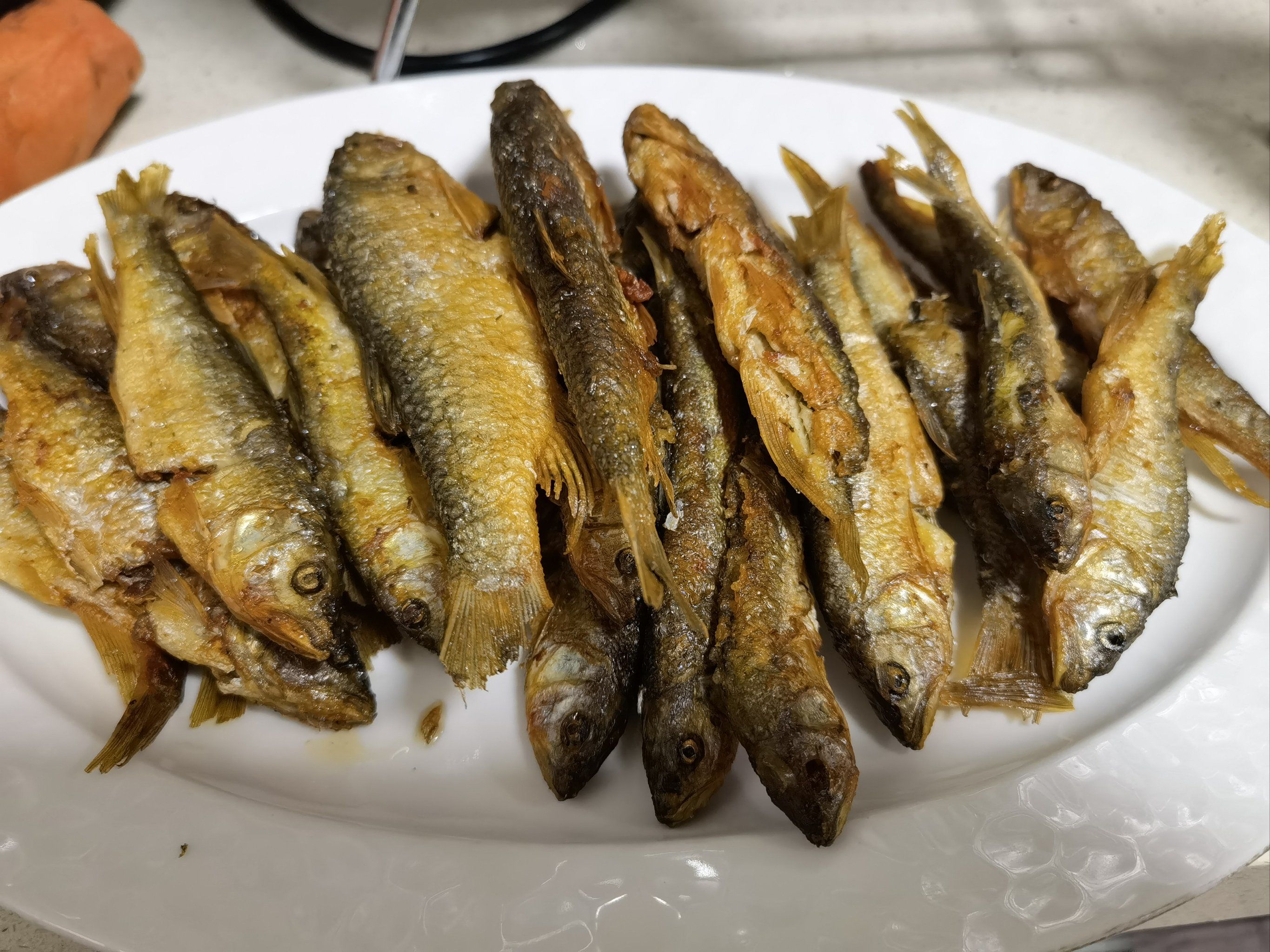 拍粉/抹盐:在鱼身两面薄薄地拍一层 干淀粉(或面粉),或者均匀地抹上薄薄一层 盐。这能进一步吸收水分,形成保护脆壳。
